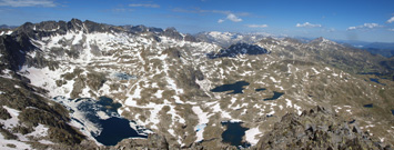 La vista és fantàstica. D'esquerra a dreta, Cercle de Colomers amb el Gran Tuc de Colomers, Contraix i Punta Alta, Beciberris, Maladeta, Perdiguero, Montardo, ...