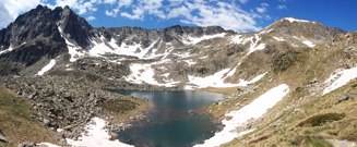 Estany del Port de Ratera. Cap de Crabes (esquerra) i Tuc de Bergús (dreta)