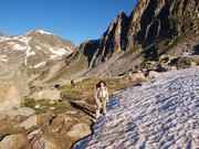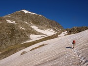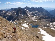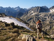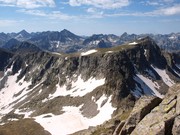 Pujant el Tuc de Ratera. A sota hi queda el Port i enrera el Tuc de Saboredo. Es veuen (petites) les Agulles d'Amitges i, rera seu, el pic de Bassiero