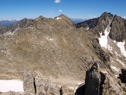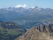 La vista és enorme. Mirant cap al nord, i girant en sentit horari, apareixen: Vall de Gerber amb el Mauberne i Mont Valier de fons,...