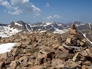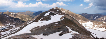 En el cim. Cap a l'oest apareixen el Pic de l'Infern, Noufonts i Puigmal al fons