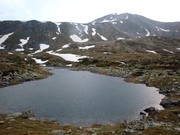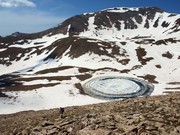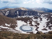 Gra de Fajol. Es veu el llac de la fosa de la neu a sota seu