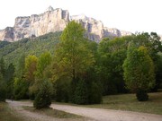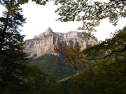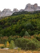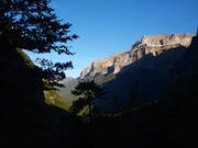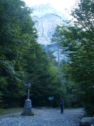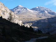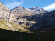 Sortint al prat del Cercle de Soaso. Al fons, immensos, el Mont Perdut i el Pic d'Anyisclo