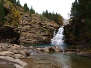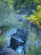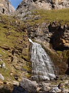 Sobre la Cascada de l'Estret, mirant cap a les parets de la Fraucata