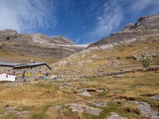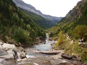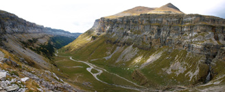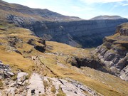 Anant decididament cap al refugi. Es pot observar el canyó excavat per l'Arazas. Estem just per sobre la Cua de Cavall