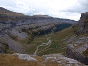 Baixem pel corriol enlloc de per les Clavilles per fer alguna foto més. S'ho mereix: Ordesa és immens (es poden observar les formiguetes del camí) i la Cua de Cavall es veu bé des d'aquí!