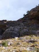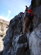 Cua de Cavall. Es veu el camí que puja per les clavilles, amagades darrera la paret
