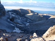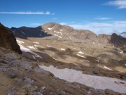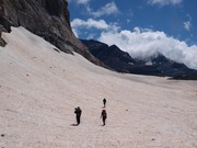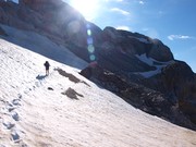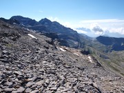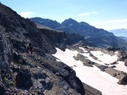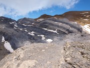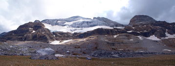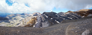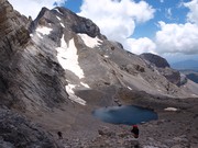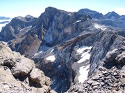 Mirant cap a l'oest hi queden els Pics de la Cascada i el Marboré. Venim de la feixa de sota (on hi ha la neu i una petita bassa)