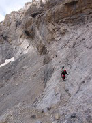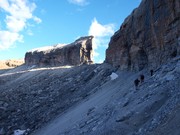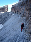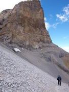 Pujant cap a les feixes de Marboré. Anem a cercar la feixa (que es veu) que volta el Cilindre per sota el Pitó