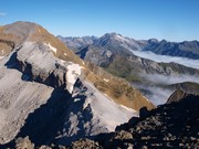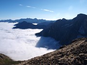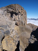 Astazús, vistos des de pràcticament a sobre la canal que hem de baixar. Quin filet de núvol!