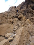 Recuperem les motxilles (que s'havien quedat en el Corral Ciego) i enfilem cap a la feixa que passa pel sud de la Torre