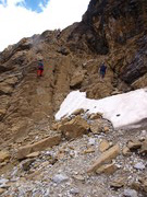 Per trepitjar la plana de Marboré encara cal baixar una canal. No sé si és la bona o no, però nosaltres baixem per aquesta. És dreta, calculo que més de 30m, però es deixa baixar sense necessitat de posar corda. Amb compte!