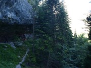 El camí entra en el bosc i es fa pas entre les parets que baixen dels Astazús