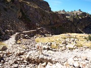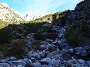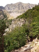 Seguint pel costat del riu, el corriol puja per una petita tartera, cap a un coll d'on surt el riu