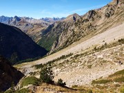 Sortint de la Sarra, en direcció a Respomuso. Al fons el pic Arriel (2824m)