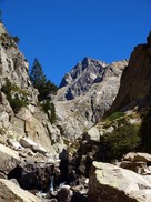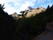 El Balaitús des de l'engorjat es veu bé. També s'intueix la Gran Diagonal, via de pujada normal