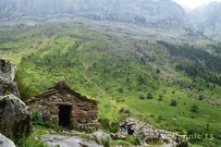 Bonica estampa de la Torre de Góriz. Al fons s'entreveu el Coll d'Añisclo