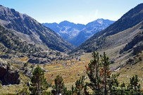 Vista de la Coma de Sotllo, amb el Pic de Baborte, tot pujant a una agulla de la carena sud de Sotllo.