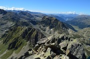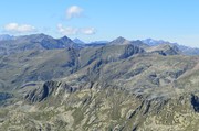 Al nord-est el Pic d'Alba (2764m) i la carena que enllaça amb el Pic de Regalecio (2670m). Al fons surten el Puig Pedrós de Lanòs i el Carlit