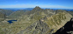 Des del Coll de Juclar (2442m), es veu el pic de Rulhe i l'Estanyol de Juclar