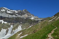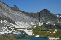 Llacs i refugi de Barroude, amb el pic de Gerbats a l'esquerra i Pic des Aiguillous