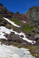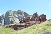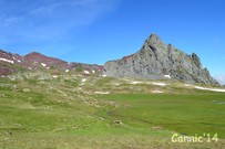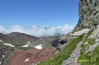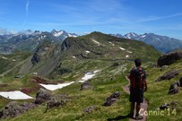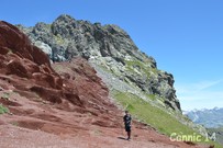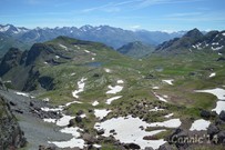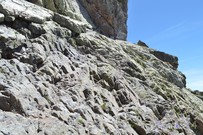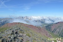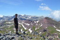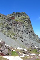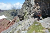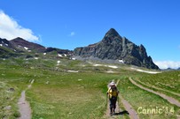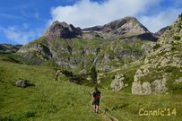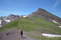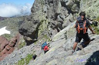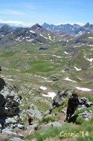 Baixant del Vértice d'Anayet al davant hi queda el Pico d'Anayet. es veu el corriol-grimpador de pujada