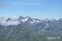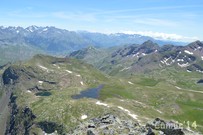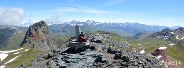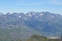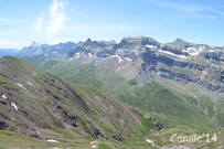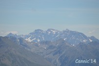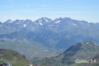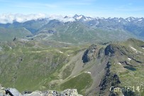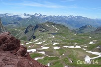 Panoràmica del Vértice d'Anayet cap al nord-est. Al davant el Pico d'Anayet. Al fons, i d'esquerra a dreta, Midi d'Ossau (ara ja se li ha enganxat el núvol!), Lurien, Palas, Arriel, Balaitús - Frondellas, Gran Fachá, Infiernos, Garmo Negro - Algas - Argualas i Massís del Mont Perdut