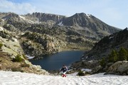 Uns metres més amunt surt l'Estany Gran de Peguera, encara ben gelat