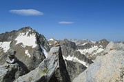 Continuant girant cap a l'oest apareixen el Subenuix i Morto al seu davant, Maladetes (al fons de tot), la Punta Alta, Contraix. Pa de Sucre (just darrera el coll de Contraix), Creu de Colomers i Gran Tuc de Colomers