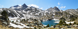 Cap al sud hi queda Mainera i els dos pics de Saburó, amb el'Estany Gran de Peguera