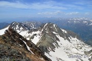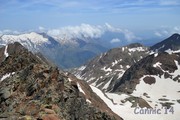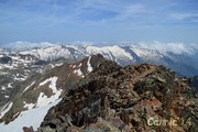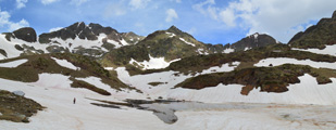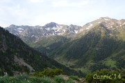 Al SSO els pics dels Estanys i de Baborte. Al fons es veu la Maladeta, i en el massís nevat de la dreta el Mont Roig