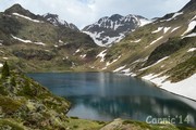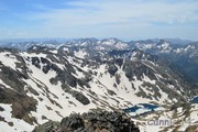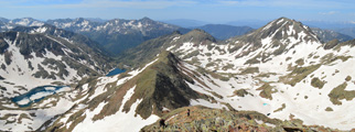 La vista és gran. Cap al S, els llacs de la Pica, Sotllo i tota la carena andorrana