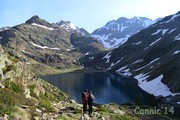 Arribant als estanys apareix, davant, el Pic de Baborte ...