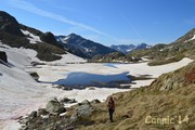 Just acabat el bony hi ha un collet amb el llac superior a sota. Travessem per sobre seu fins a pujar al llom herbós que baixa de la carena