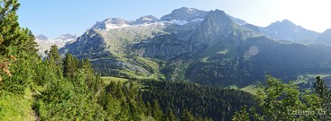 La Maladeta des de l'Ivó de Batisielles. Es veu tota la serra: Alba, Dent d'Alba, Mir, Sayó, Cordier, Maladeta-Abadies, Maldito, Aneto, Tempestats, Rusell