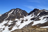 Arribats a la Portella, al nord apareix la piràmide del Pic d'Auriol, que queda...
