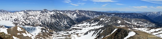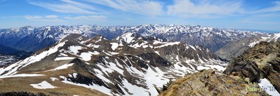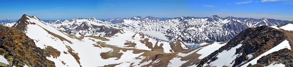 Enrere hi deixem el Pas de la Casa i els Pics d'Envalira. Al fons el Cercle dels Pessons