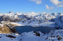 I de seguida el llac d'Estanés, amb el Midi d'Ossau a l'esquerra i el Pic i Vértice d'Anayet a la dreta