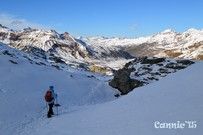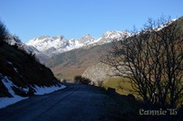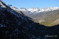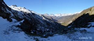 Reculant. Des del coll es veuen al fons Ansabere, Mesa de los Tres Reyes i Anie