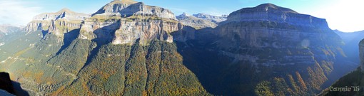 Panoràmica des de Calcilarruego: d'esquerra a dreta, la vall d'entrada, Cotatuero i Ordesa. Sota el Pic Salarons es veuen el Tozal del Mallo i Gallinero. Entre Cotatuero i Ordesa la Punta Tobacor