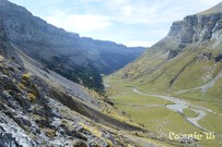 Sortida del pàrking d'Ordesa. A la dreta, a dalt, el Mirador de Calcilarruego, objectiu inicial