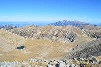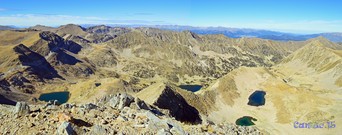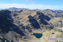 Llacs de Carançà. Al fons es veu el Pirineu, des de la Pica d'Estats fins al Carlit i Perics.
