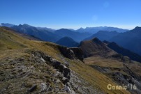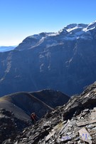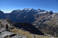 Cap al sud-est es veu el Comodoto i el camí fet. Al fons Cotiella i Penya Montañesa