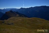 El camí fins a Sobrestiva és un prat. Es veu la carena que va de Sobrestiva fins al Chinipro