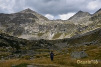 Estanys Gémena. Al fons (d'esquerra a dreta), Pic de Baserca(2873m), Punta Senyalada(2950m) i Pic d'Abellers(2983m)